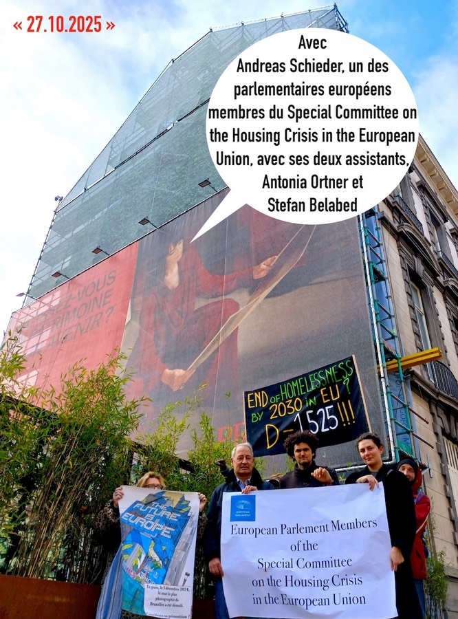 Chaque mois, une personnalité/association qui est partie prenante de la question est invitée à rehausser la photo-souvenir de sa présence : Alain Maron (nov. 2024), Nawal Ben Hamou (déc. 2024), Bruss’Help (janv. 2025), la Feantsa (février 2025), l’AMA (mars 2025), la Commission Logement (avril 2025), le New Samusocial (mai 2025), l’Umbrella Refugee Committee et Ukrainian Voices (juin 2025), la pause estivale, sauf pour le SDI (juillet 2025), la Bico (août 2025), le BPA (septembre 2025), le Special Committee on the Housing Crisis in the European Union (octobre 2025) …
